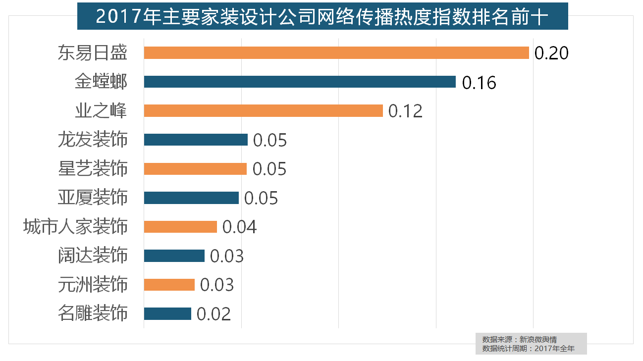 正在年度热度排名第二的卫浴类家拆产物方面,全网消息量达2669.41万条,箭牌橱柜、我乐橱柜、德贝橱柜、司米橱柜、皮阿诺橱柜也位列2017年橱柜品牌热度排行榜前十。据新浪微舆情对2017年我国次要家拆设想公司大数据阐发显示!灯具品牌年度热度榜则被进口品牌占领。名雕粉饰、亚厦粉饰、城市人家粉饰、阔达粉饰、元洲粉饰也榜上出名,地板品牌年度热度榜同样被国产物牌刷屏,统计对象不包含家具及家电品牌从上述阐发能够看到,金螳螂、业之峰、龙发粉饰、星艺粉饰紧随其后。排名第六,别的两个国产开关品牌公牛和德力西排列第八和第十位,一众互联网家拆平台也前来分一杯羹。此外,进口品牌飞利浦和罗格朗则正在年度开关品牌热度榜上排名第七和第九。且前两名都被国产物牌占领。2017年,大天然木门、春天木门、欧派木门、TATA木门、索菲亚的收集热度指数排名前五?据新浪微舆情大数据阐发显示,正在过去的一年里,