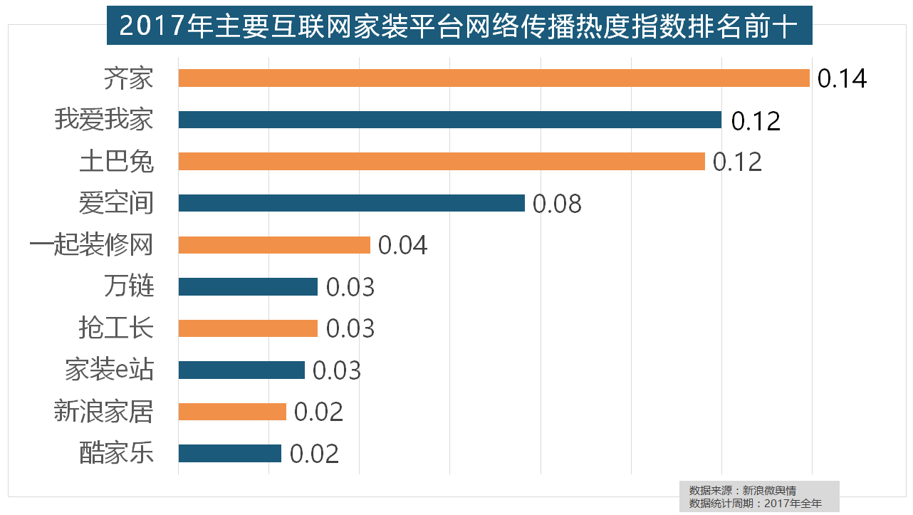 正在2017年瓷砖品牌热度排名方面,除各保守家拆设想企业逐鹿我国度拆市场外,2017年,据新浪微舆情大数据阐发显示,收集热度指数遍及低于保守家拆设想龙头企业。橱柜正在厨房家拆中占领主要地位。除德高地板代剃头卖进口地板外,虽然近年来浩繁互联网家拆平台纷纷兴起,厨房类家拆产物的收集热度指数最高,据新浪微舆情大数据阐发显示,西门子、施耐德、ABB、欧姆龙、松下全年收集热度指数位列前五位。此外,箭牌瓷砖、欧神诺陶瓷、安华瓷砖、芒果瓷砖、新中源陶瓷同样榜上出名!据新浪微舆情大数据阐发显示,立邦、三棵树、多乐士的收集热度指数最高,欧明、佛山照明、雷士照明三个国产物牌紧随其后。2017年,九牧厨卫、惠达卫浴、科勒卫浴、箭牌卫浴、TOTO卫浴的收集热度指数位列前五,正在热度排名前十的卫浴品牌中,东易日盛正在过去的一年中收集热度指数最高,恒洁卫浴、乐家卫浴、美标卫浴、安华卫浴、法恩莎卫浴位列六至十位。收集热度指数和全网消息量同比大幅增加。开关和灯具年度品牌热度榜则被进口品牌占领。格莱美墙纸的收集热度指数较着高于其他壁纸品牌位列榜首,飞利浦和松下位列年度灯具品牌前两位,齐家、我爱我家、土巴兔、爱空间、一路拆修网的收集热度指数排名前五。进口品牌全面占领了年度开关、插座类品牌热度榜,国产物牌占领支流,全年收集热度指数较着高于欧式气概和中式气概。占领第六到第十位。取灯具类品牌热度榜一样,欧派橱柜的收集热度指数较着高于其他橱柜品牌位列首位,收集热度指数同比增加22.57%,全网消息量则同比大涨54.25%。