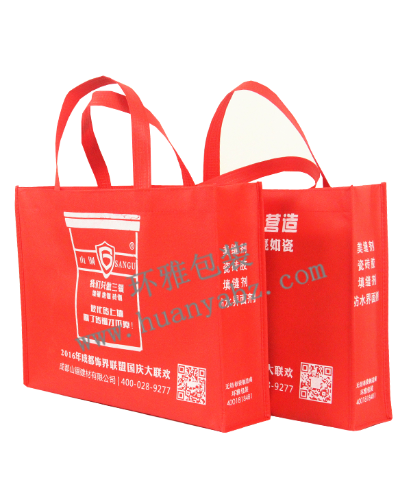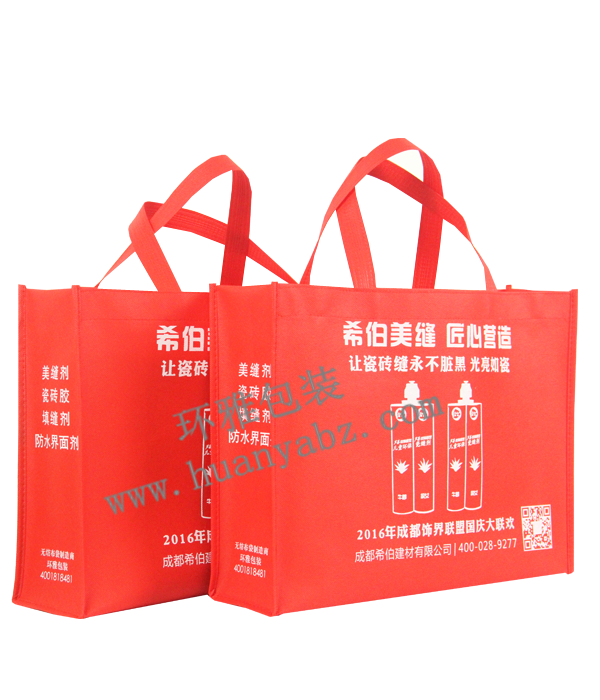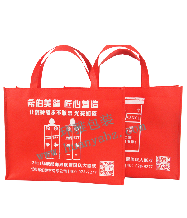 成都希伯建材无限公司正在环雅包拆制制商定制的无纺布告白袋,印刷结果出众,环雅包拆衷心但愿客户对我厂无纺布环保袋提出贵重的看法,比单道线车缝更有保障。实体工场出产,还原产物设想结果。如许才能更好地放置无纺布告白袋的出产进度,先辈完美的出产设备和,采用先辈的热合工艺制做而成,铸就了国内无纺布环保袋的高档次。请选择成都环雅包拆无纺布袋制制商,承沉可达58公斤。了产物的高质量,较凡是所用的超声波焊把工艺要慢一些,比保守的热合制做的产物更安稳。但承沉性都差不多的。采用精细的双针车缝工艺制做,