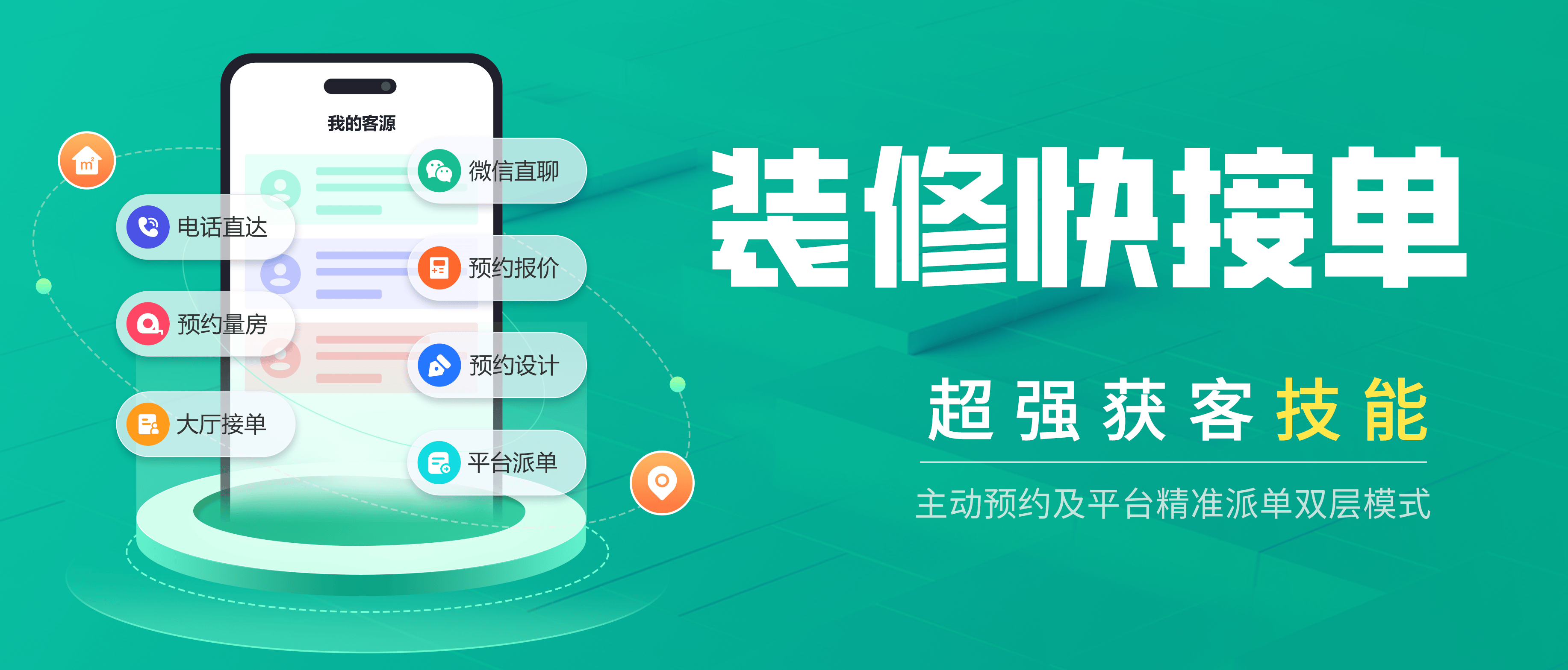 2. 拆修接单宝 APP:自从抢单适配新公司节拍,可先接小单堆集案例和口碑,8 年平台保障客源实正在,而是精准获客渠道,及时推送周边高意向客户,业从一键预定,很快就能堆集口碑,就能快速破冰,